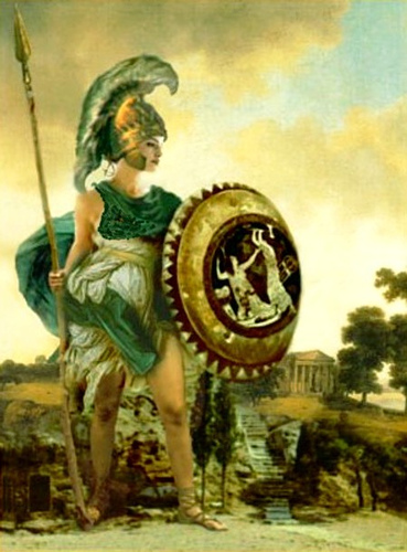 Atenea en la lucha, el joven mortal la despojó de lanza y escudo, y le arrebató